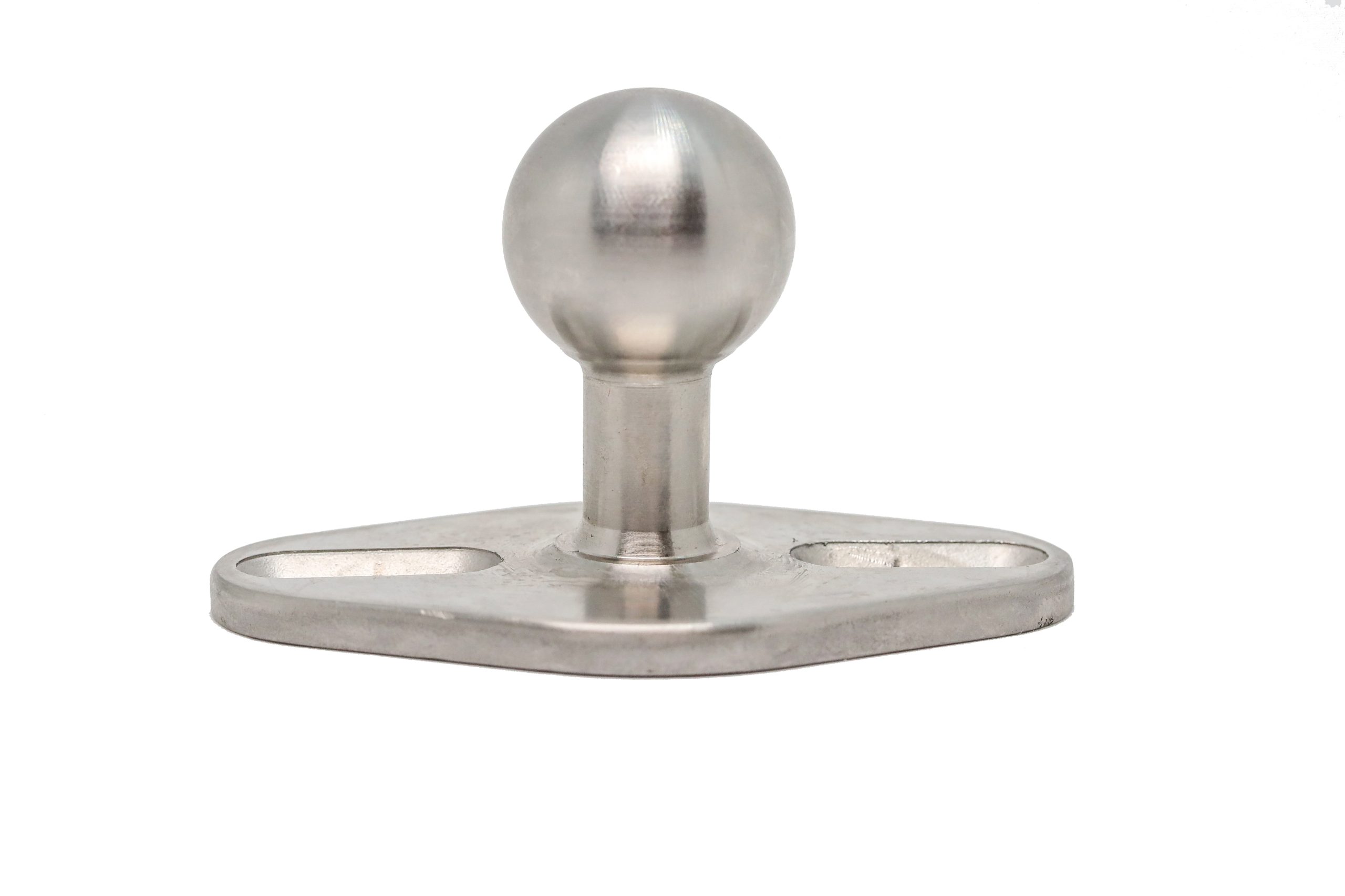 This is our 1″ Ball Mount made to work with most 1″ mounts such as Ultra and Ram Mount. What makes this unique is that it wont spin, loose or break like the standard threaded ball on a threaded stud. A great fix to an old problem!