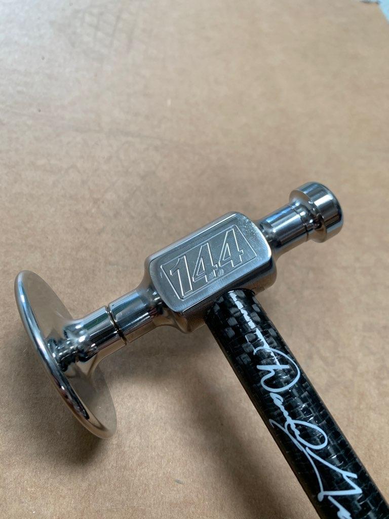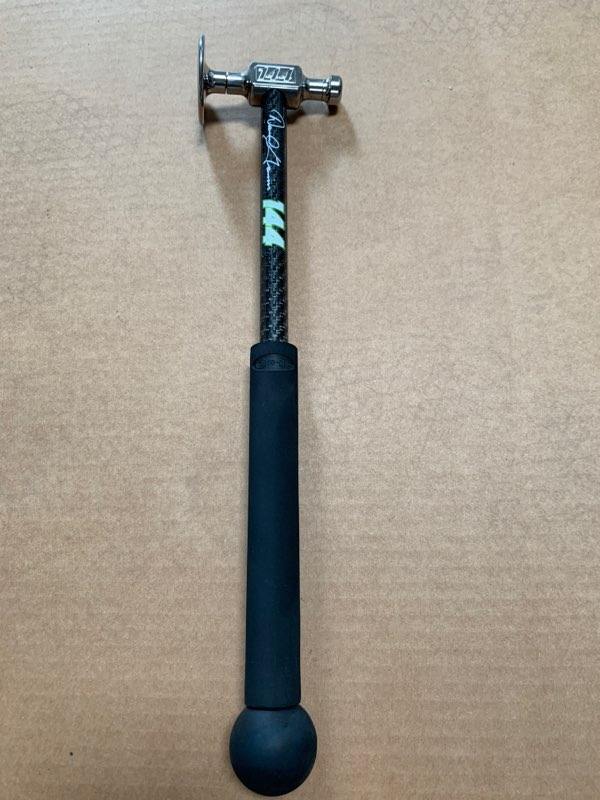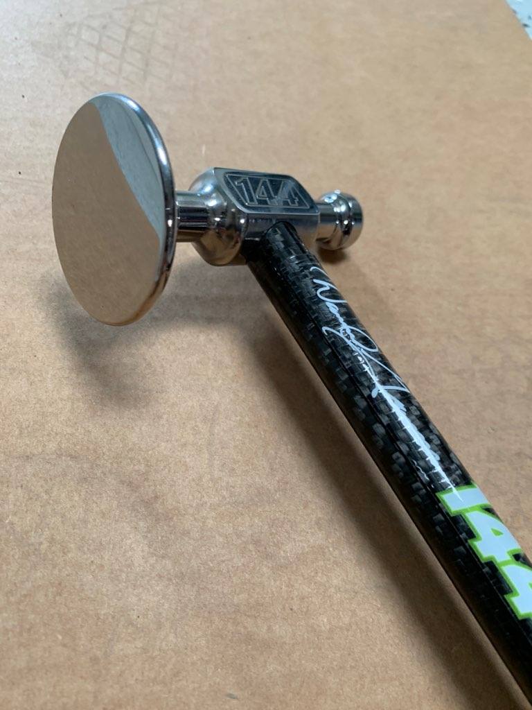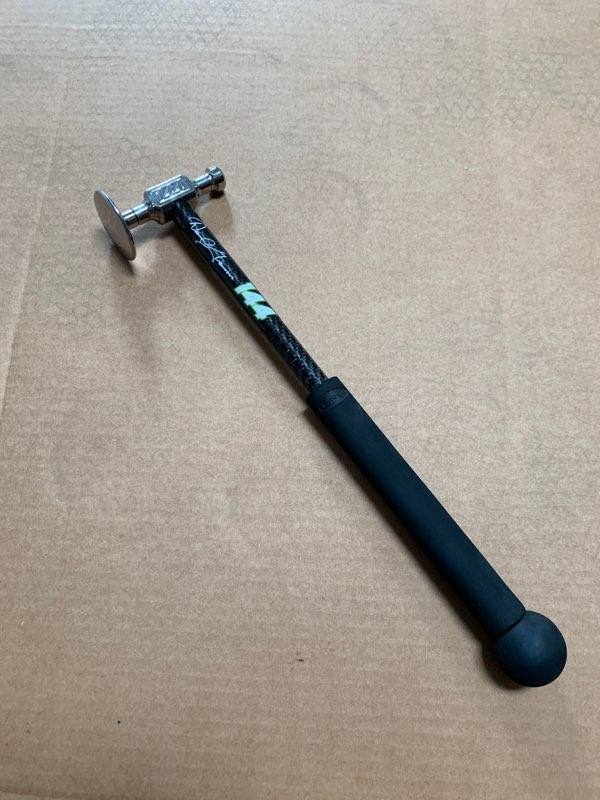 This hammer was designed by Daniel Gromm specifically for bigger smashes. Made of 17-4 stainless steel and mirror polished to perfection. This hammer is much heavier than most designed to move lots of metal. Comes with two removable tips made of heat treated and polished 17-4 stainless steel, a Re-Grip rubber grip, rubber ball handle and carbon fiber shaft.